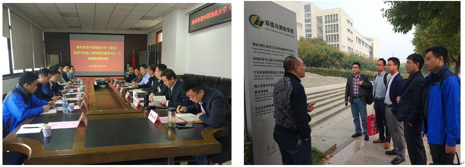 和特色工作,教学副院长周来就学院本科教学和创新创业教育等工作进行了重点介绍,学院首席学科带头人邓喀中、测绘与地理信息系主任张书毕、教师代表秦凯、学工办主任韩福顺就科研、教学等工作与调研学习团成员进行了深入交流。调研学习团同时参观了该学院的重点实验室、测绘文化广场。