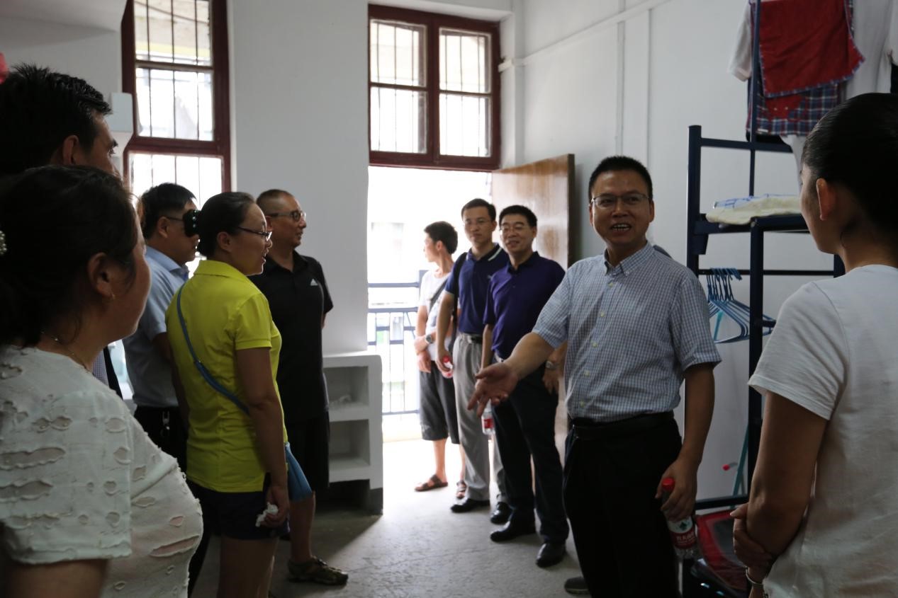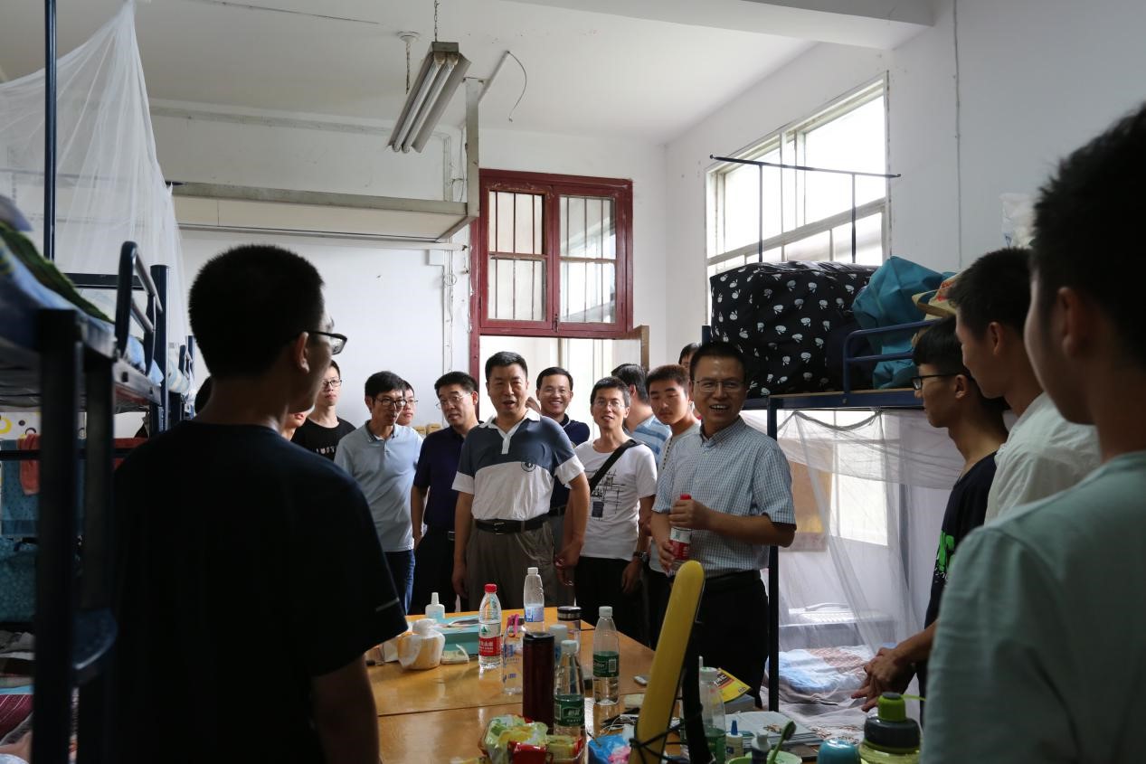 9月2日下午4点,为更好地了解新生入住情况,信工学院院长谢忠、党委书记许德华、副院长刘修国、潘雄、关庆锋以及各新生班主任和学工组全体老师一同走访慰问2018级全体新生宿舍。
