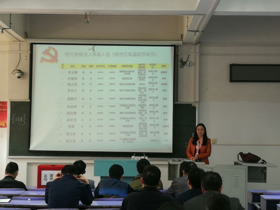 会议伊始,黄老师介绍了本次大会的主要议题,向学院党员介绍了田玉刚等11位党代表候选人。候选人中,唯一的一位学生党员叫霍少孟,2016年本科毕业于信息工程学院信息工程系,毕业后在江西赣州支教一年,并荣获江西省“优秀党员”称号,现为麻豆影视