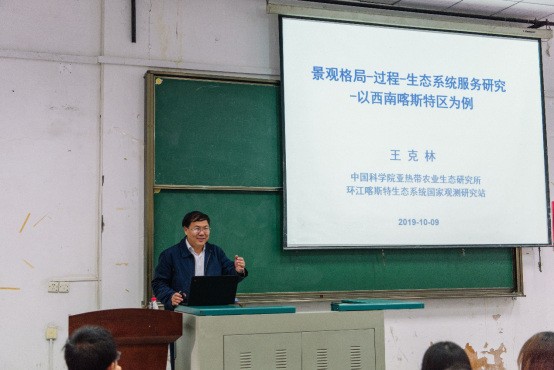 邀请,10月9日上午,中国科学院亚热带农业生态研究所党委书记王克林研究员在南望山校区教三楼207进行了“景观格局-过程-生态系统服务研究—以西南卡斯特区为例”专题讲座。本次讲座由王绍强院长主持,麻豆影视