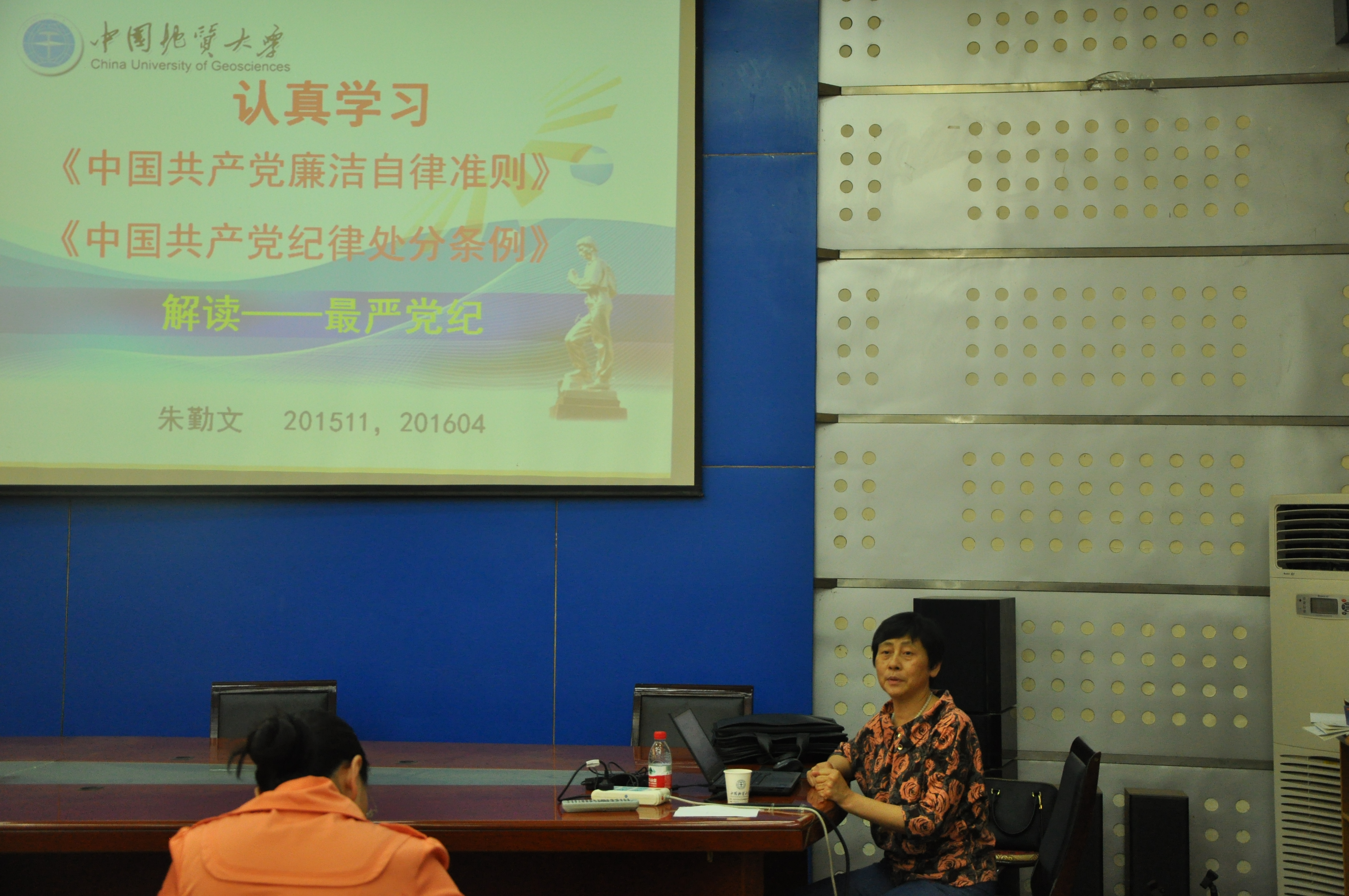 教职工党员开展“两学一做”专题学习会。此次学习的主题是由朱勤文教授讲党课,带领全院教职工党员认真学习《中国共产党廉洁自律准则》和《中国共产党纪律处分条例》,解读史上最严党纪。