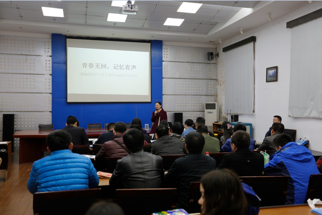 2016年10月29日下午,麻豆影视 2006届软件工程毕业生在信息工程学院报告厅举办毕业十周年返校聚会,信息工程学院党委书记黄菊老师、党委副书记许德华老师到场参与。
