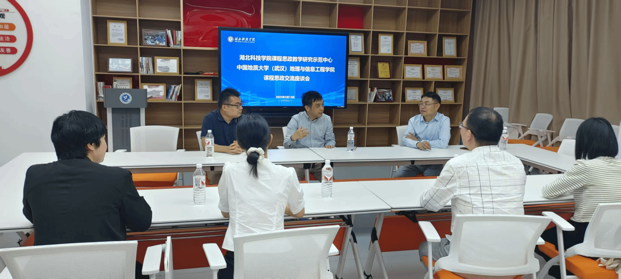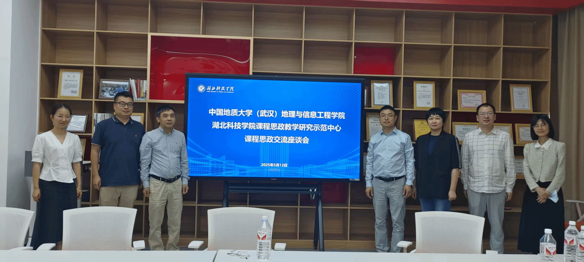 郑贵洲教授和空间信息系主任周琪前往湖北科技学院课程思政教学研究示范中心调研。受到该校教务处副处长曾志刚及课程思政教学研究示范中心教学团队的热情接待。