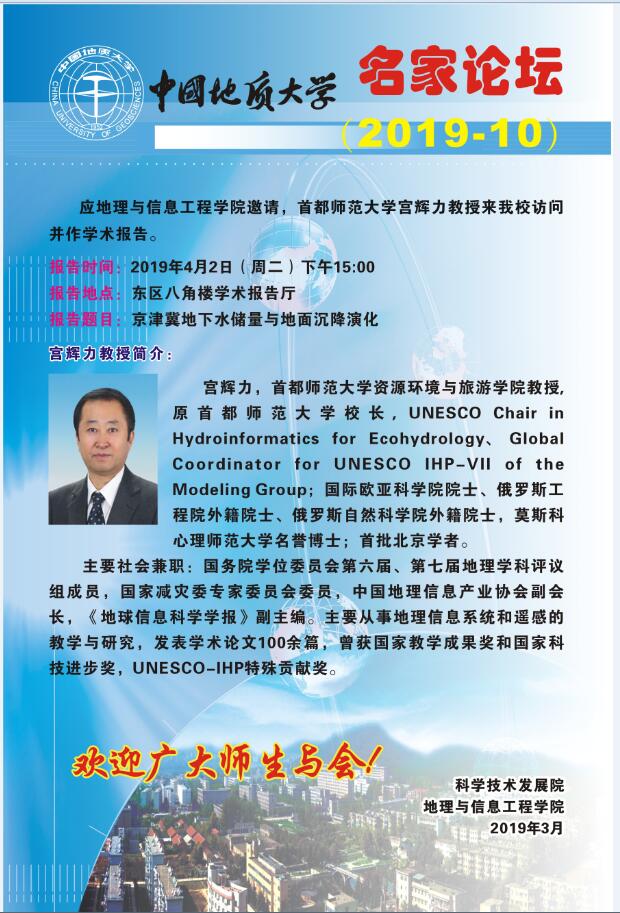 名家论坛(2019-10): 京津冀地下水储量与地面沉降演化
