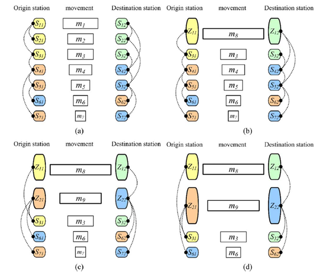 图1 (a)初始的站点和移动 (b)前人的研究 (c)本研究的方法