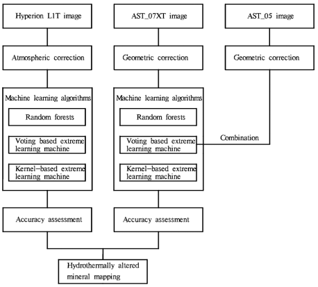 采用投票极限学习机从AST_07XT,AST_05,Hyperion数据中提取热液蚀变矿物