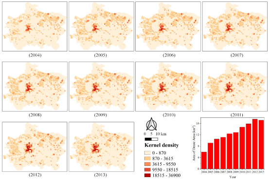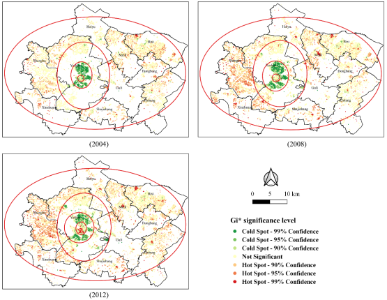 图2 常熟市2004、2008、2012年住宅的冷热点分布