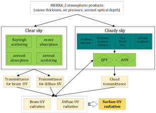)三部分。太阳紫外辐射与地-气系统间的诸多生态过程和生物化学过程息息相关,对臭氧有着较强的衰减效应,是区域臭氧浓度变化的主要因素之一。同时,太阳紫外辐射量增加会对人类身体健康产生影响,增加眼病、皮肤癌和传染病的发生率。精确观测太阳紫外辐射量是探究其对自然环境和人类健康影响的基础和前提。但是,受建设成本和维护成本制约, 国内外紫外辐射地基观测站点的空间分布较为稀疏,无法提供高质量的时空连续的面域观测数据。本研究利用地基气象观测数据和再分析数据,发展了一套宽波段太阳紫外辐射量估算模型,实现了大范围、长时序和高精度的太阳紫外辐射量反演。在此基础上,重建和分析了我国太阳紫外辐射量的时空变化规律。