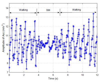 (用户在经过门时,手机里的加速度读数会经历上述变化趋势)