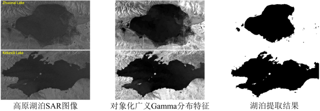 · 本文所使用的广义伽马分布统计模型能够同时实现均质和异质区的SAR图像杂波建模,结合自适应多尺度分割,能够实现无人工干预的特征提取;其次,所使用的随机森林分类器对参数不敏感,也增加了算法的鲁棒性;另外,本文算法样本量需求低,对样本不敏感。综合以上,本方法的重要特征在于鲁棒、实用,能够有效应用于大范围的高原湖泊提取和监测应用。
