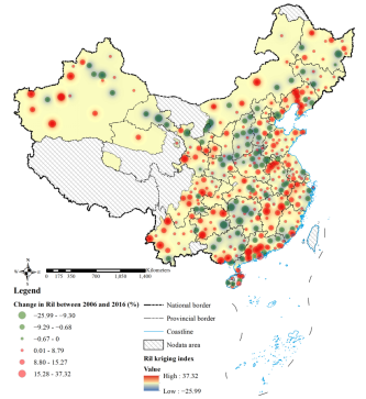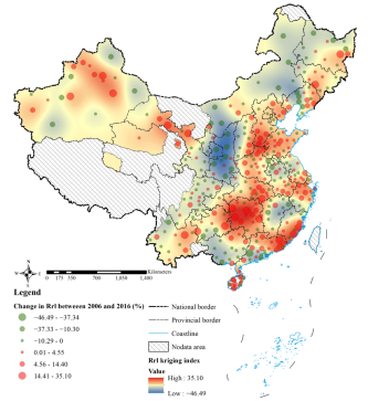 图2 2006~2016年城市居住用地占比变化格局