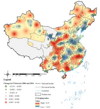 图4 2006~2016年城市土地利用多样性变化格局