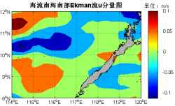 图3 Ekman 流经向速度分量 图4 Ekman 流纬向速度分量