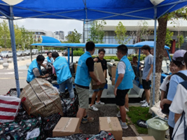 今日的校区搬迁,最让人感动的是穿着蓝色志愿马甲服的学长学姐们在武汉烈日炎炎的天气下为我们搬运行李。看着他们在楼道穿梭的身影,我感受到了学姐学长们“奉献、友爱、互助,进步”的志愿精神,也感受到了学校浓厚的人文主义关怀。我非常感谢他们在如此炎热的天气下为我们搬运行李,即使十分辛苦,但仍然是坚守职责,将志愿精神体现得淋漓尽致。