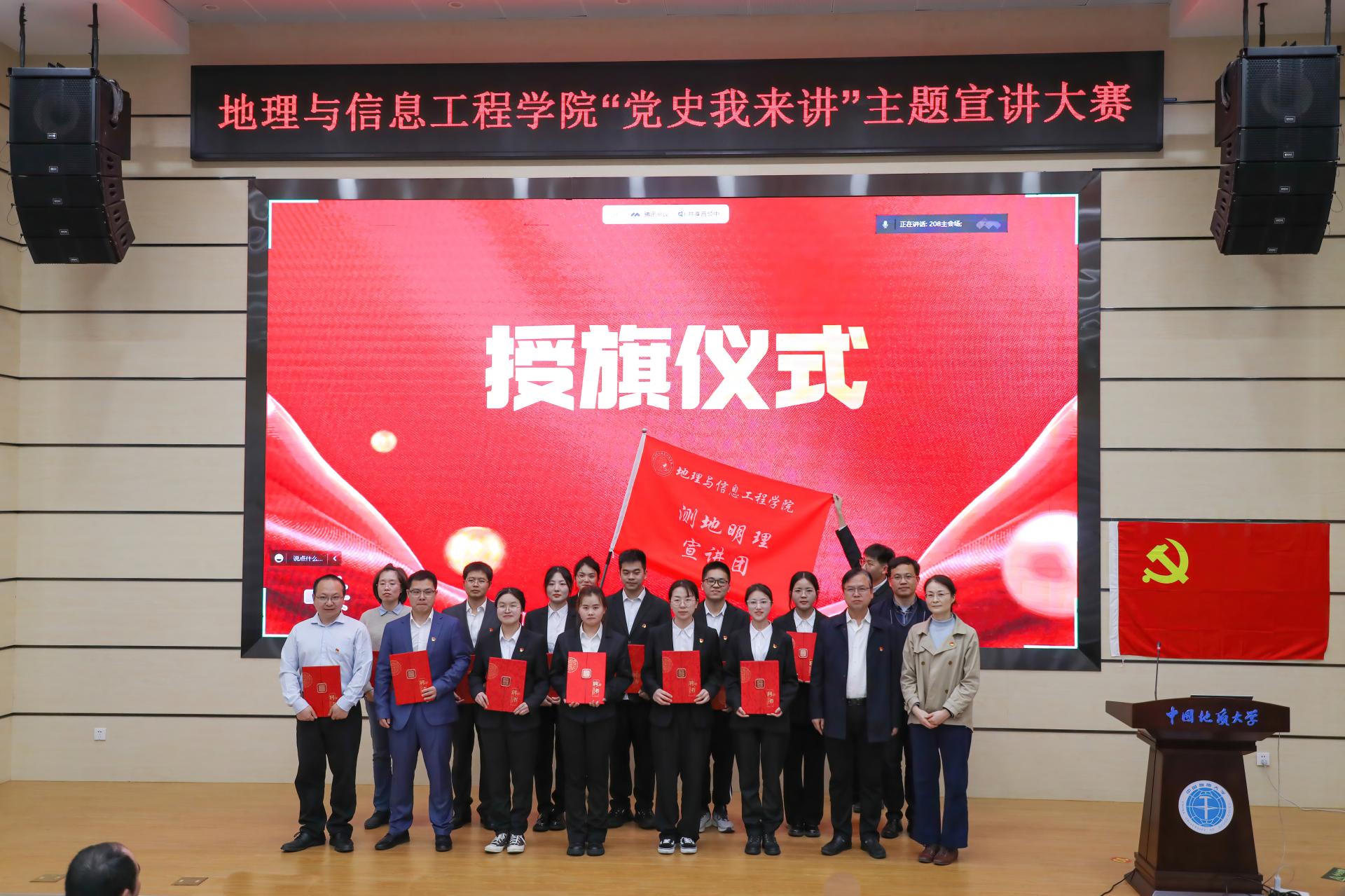 “测地明理”宣讲团宣布正式成立。宣讲团将成为学生成长成才的有效平台,为学生素质能力提升提供有力支撑,为培养堪当民族复兴大任的时代新人保驾护航。蒋怀柳、武彦斌为宣讲团成员颁发了聘书。