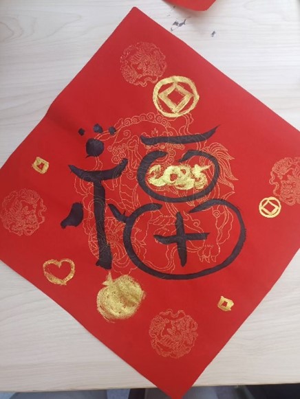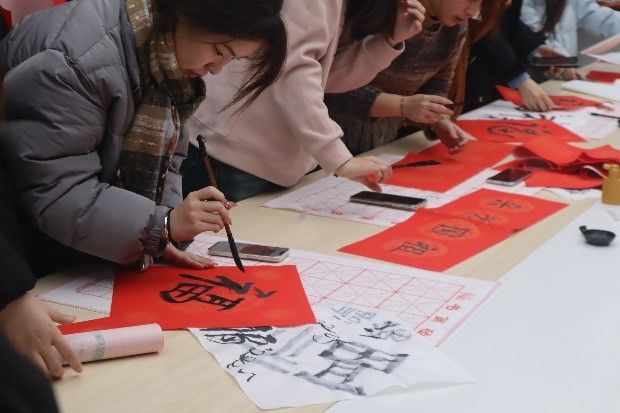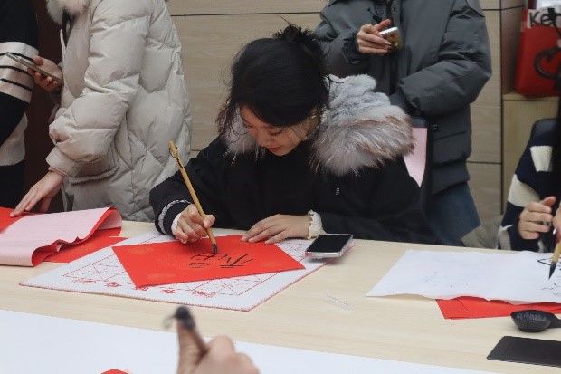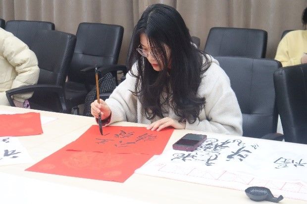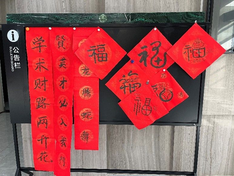活动结束后,这些凝聚着浓厚情感的“福”字和春联被悬挂在学院楼的走廊、办公室门楣等处,为校园增添了浓浓的新年氛围。