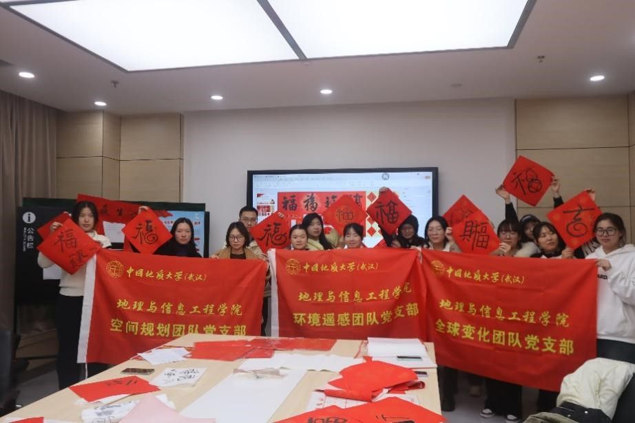 环境遥感团队研究生党支部、空间规划团队研究生党支部与全球变化团队研究生党支部联合举办“笔墨传情,福满校园——迎接新年送祝福”中国优秀传统文化教育实践活动。师生通过手写“福”字、春联等传统形式,感受文化,传递祝福。