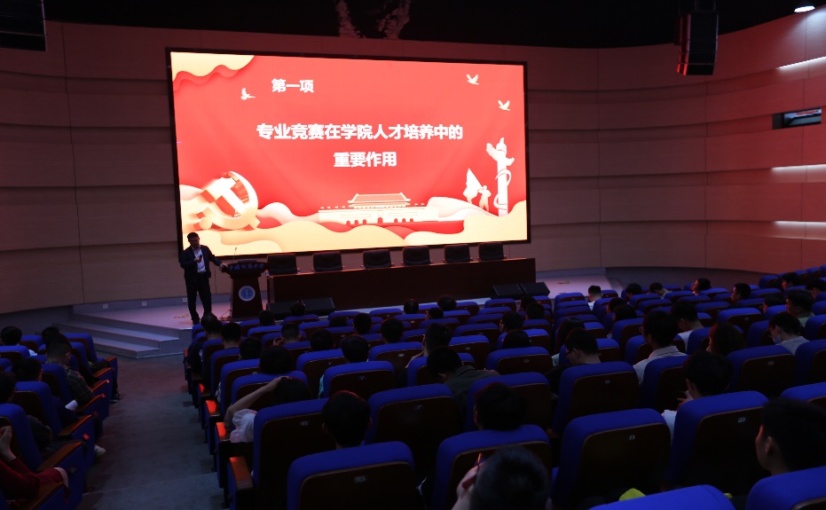 刘修国讲解了专业竞赛在学院人才培养中的重要作用,他指出,专业竞赛对国家科技进步、学校发展、个人能力提升都有着至关重要的作用,并勉励同学们以昂扬的斗志,赛出水平、赛出风格,砥砺奋进、载誉归来,并做好赛后的总结。