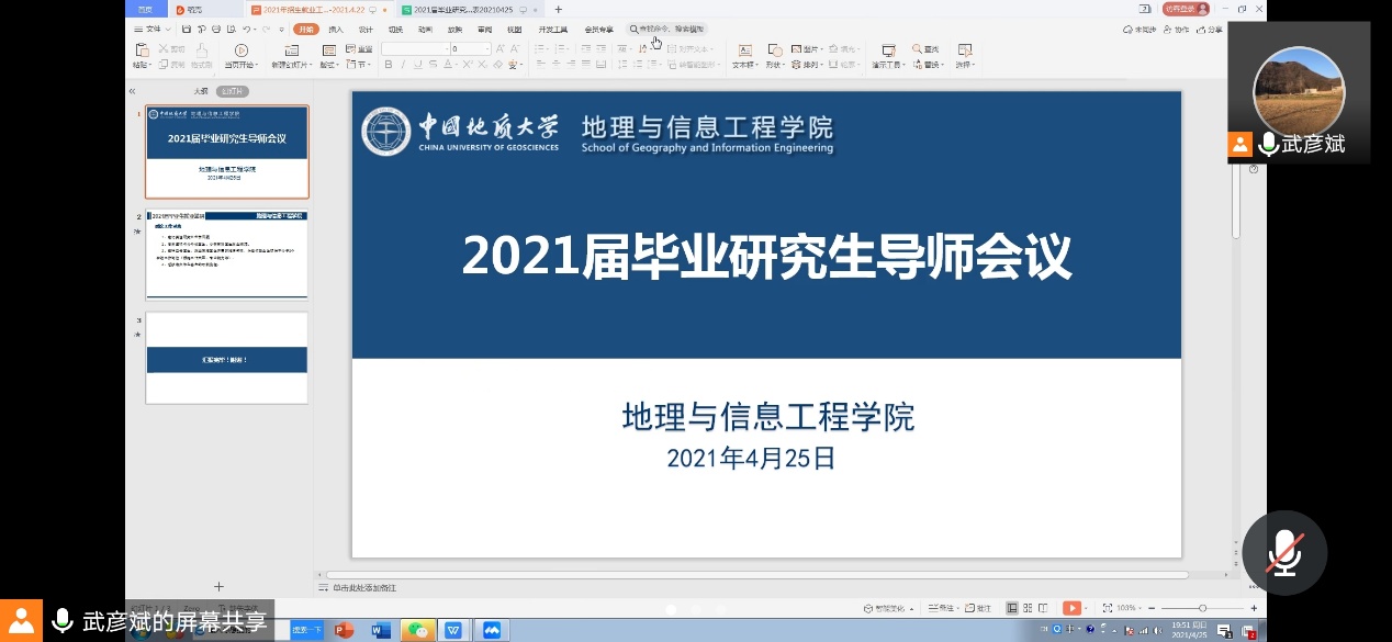 2021届毕业研究生导师会议采取腾讯会议进行。参加本次会议有学院党委书记许德华、副院长关庆锋以及尚未落实毕业去向的2021届毕业研究生导师。会议由副书记武彦斌主持。
