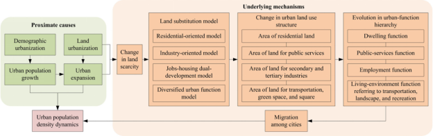 图1 城市土地利用结构影响城市人口密度动态的机理框架