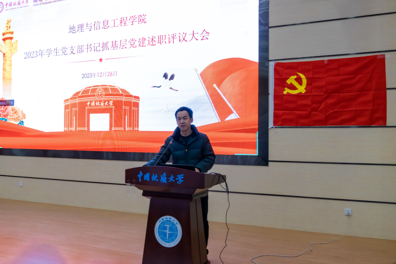 图5 地理信息科学专业本科生党支部鲍澜华进行述职