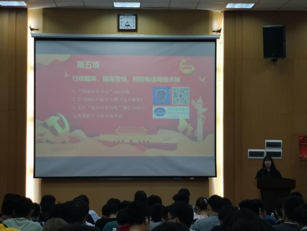兼职辅导员张巍就近期学校关于预防诈骗、接种疫苗的公告和措施进行讲解。武彦斌结合学校和学院的工作部署,强调预防诈骗、接种疫苗、疫情防控、防止溺水和考试纪律等工作。
