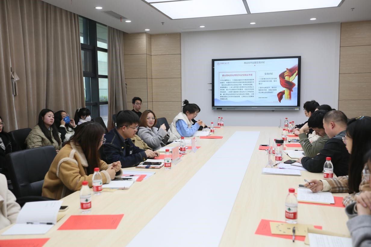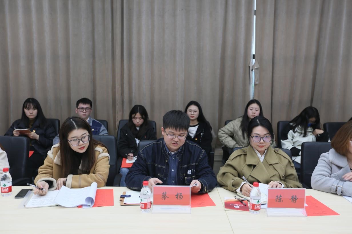 首先,与会人员集体重温入党誓词。赵晓振和陈静分别介绍学院基本情况,同时鼓励两院研究生会持续深入交流与联动。随后,陈涛对2023年全国两会内容及政府工作报告作出部分解读和分享,号召与会师生全面深入学习贯彻党的二十大精神,砥砺前行,好学敬业,以实际行动为党和人民的事业贡献个人力量。