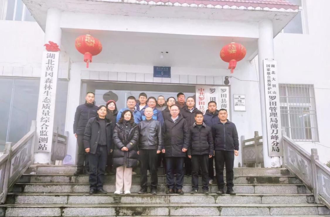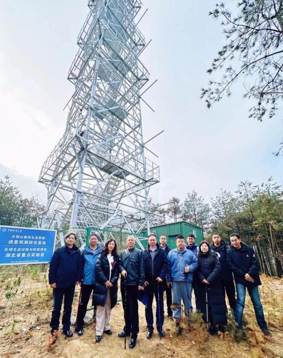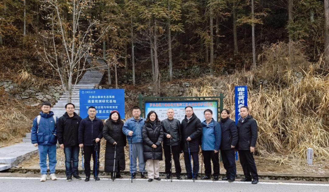 在建的湖北黄冈森林生态质量综合监测站实地考察指导工作。湖北大别山国家级自然保护区罗田管理局副局长陈国辉、湖北大别山国家级自然保护区罗田管理局薄刀峰分局局长何建国、学院党委书记孙莉、副院长王伦澈等一同参加了考察交流。