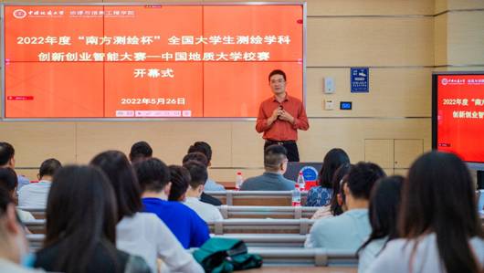 的求学经历以及在南方集团的工作经历,报告了测绘科学与技术对国家发展和现代科技生活的贡献,希望通过本次赛事进一步提升学生的实际动手能力,号召大家积极投身于国家测绘科学事业和产业的发展。
