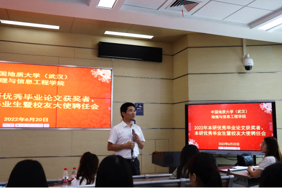 (武汉)未来城校区公教一109教室召开院优秀毕业论文获得者、优秀毕业生暨校友大使聘任会。学院党委副书记武彦斌、副院长宋小青,学生工作办公室赵晓振主任、穆巴热克老师,教学与发展办公室教学管理助理孙慧敏,以及优秀毕业论文获得者、优秀毕业生和校友大使共计80余人参加会议。