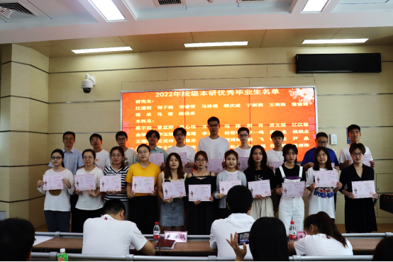 武彦斌副书记为荣获2022年院级优秀研究生(本科生)毕业生颁发荣誉证书。