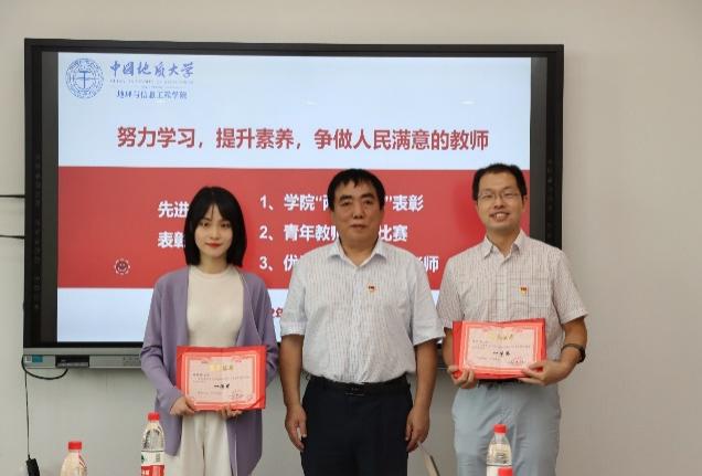 会议首先进行2022年春季学期表彰仪式。副校长赖旭龙教授为在学院青年教师讲课比赛中取得优异成绩的青年教师颁发荣誉证书。院党委书记许德华对学院“两优一先”代表颁发荣誉证书。副院长宋小青教授为学院优秀学位论文指导老师颁发荣誉证书。