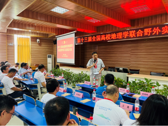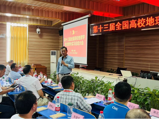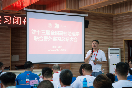 教育部高等学校地理科学类专业教学指导委员会副主任、全国高校地理学联合野外实习联盟理事长、华东师范大学郑祥民教授做实习总结点评。他代表教育部高等学校地理科学类专业教学指导委员会、全国高校地理学联合野外实习联盟对承办本次联合野外实习的组织单位表示衷心的感谢!郑祥民教授指出,地理学联合野外实习的目的是为国家培养基础知识扎实、业务能力精湛、具有家国情怀和奉献精神的地理人才。他鼓励同学们要围绕国家重大战略问题,用地理学专业知识服务于国家建设,为祖国的明天添砖加瓦。