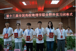 全国高校地理学联合野外实习联盟秘书长、华东师范大学地理科学学院副院长周立旻教授为优秀指导老师代表颁发荣誉证书。