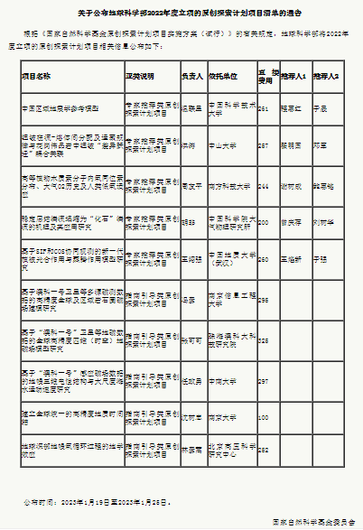 1月19日,国家基金委公布2022年度地球科学部立项原创探索计划项目清单,麻豆影视
