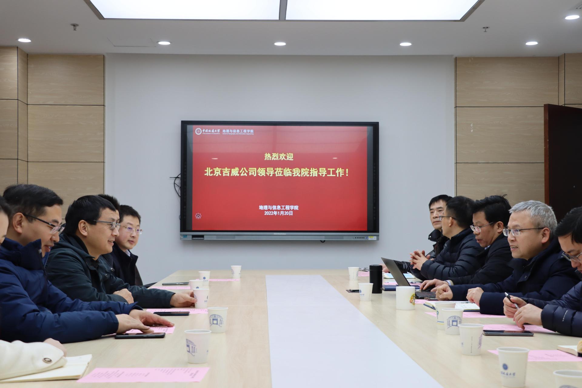 2022年1月20日,北京吉威数源公司董事长张扬率公司副总经理李晶云等一行6人到访学院并就校企合作、人才培养等内容开展座谈。学院党委书记许德华,学院副院长、国家GIS工程技术研究中心主任陈能成,学校科学技术发展院副院长单华生,学院党委副书记武彦斌,测绘系支部书记徐景田等参加座谈交流。