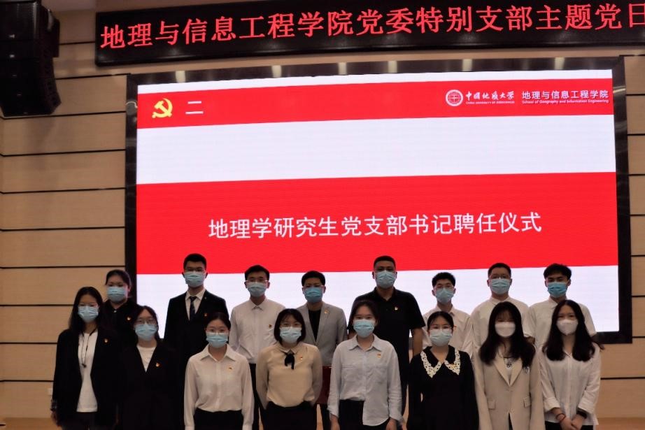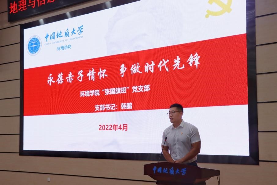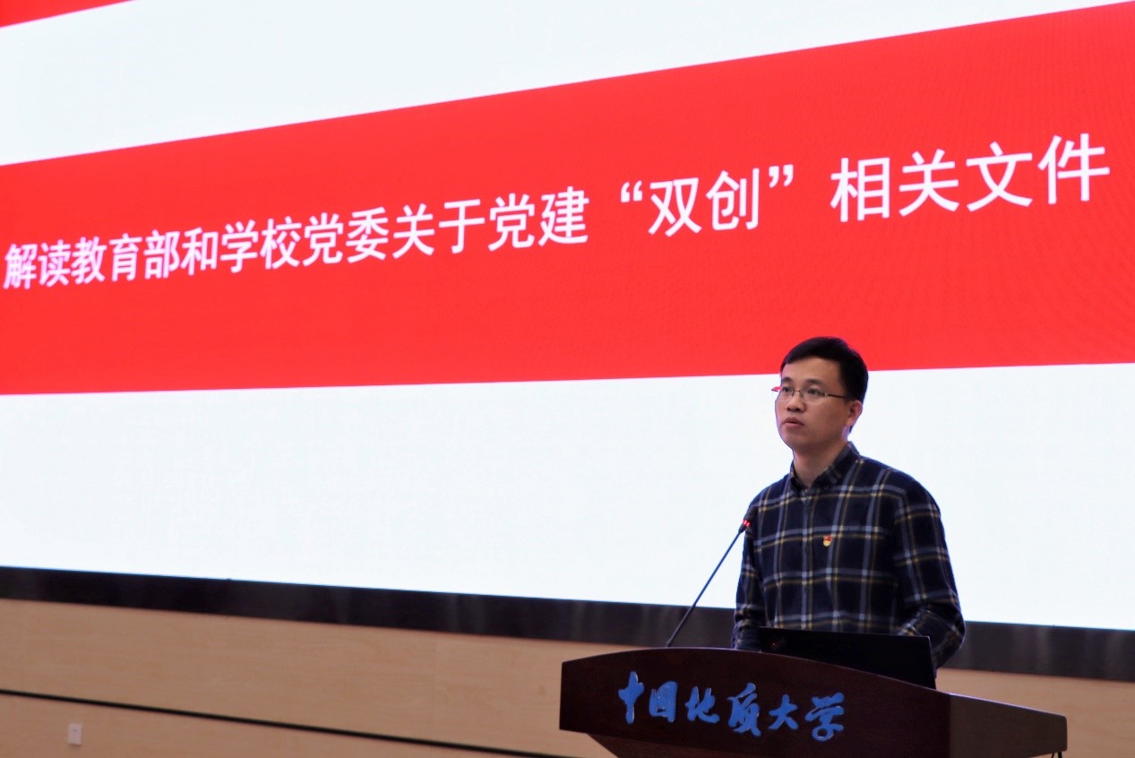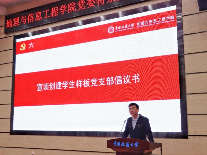 武彦斌同志宣读学院党委关于地理学科研究生党支部设置调整的决定,并对教育部和学校关于党建“双创”工作相关文件进行解读。