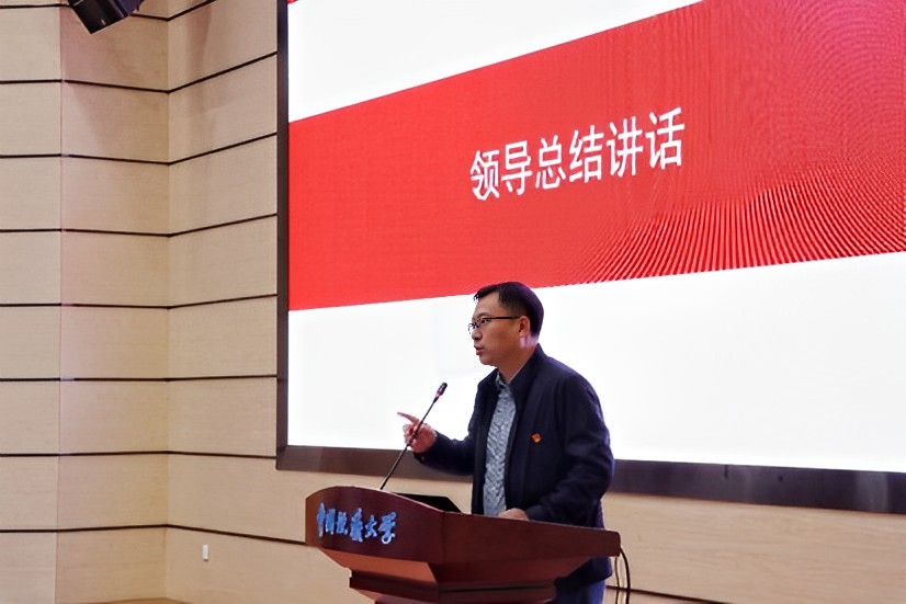 许德华同志作总结讲话。他首先代表对来学院传经送宝的样板党支部书记表示衷心感谢。他指出,学院历来重视学生党支部建设,开创性的在学院创建了“红色之翼”党建工作室,依托党支部立项和党员设岗定责推进学院党建工作,实现党建带团建,打造“红色之翼”工作品牌。学院对党支部建设的不断探索,引领师生骨干在党支部建设平台上锻炼实践,旨在增进广大党员同学对党中央会议精神的理解,进而教育引导广大师生坚定“听党话,跟党走”的信心和信念,争做堪当民族复兴重任的时代新人。