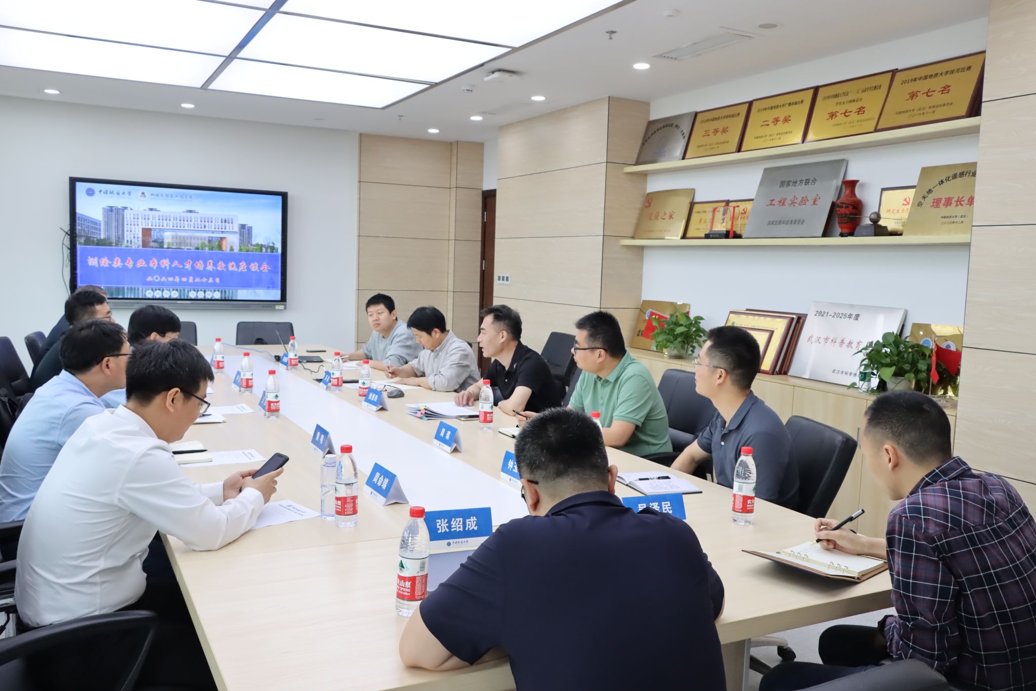 近年来在学科建设与发展、人才培养等方面取得的成绩和进展,希望后续与北京建筑大学测绘与城市空间信息学院继续保持密切交流,实现学科建设和人才培养等多方面的合作共赢。王坚对北京建筑大学测绘与城市空间信息学院的党建思政、测绘学科发展和专业建设、人才培养等情况进行了简要介绍。陈刚分享了个人对测绘科学与技术学科发展的认识,钟玉龙、周琪分别介绍了测绘工程、地理信息科学专业的专业沿革、建设历程以及2023版人才培养方案修订情况。