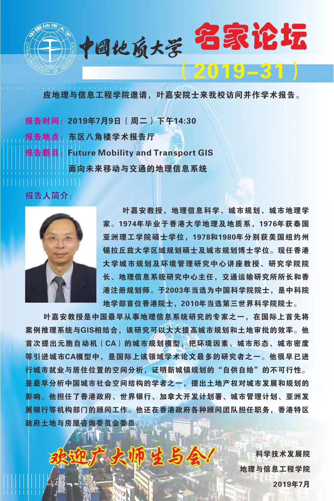 (武汉)和中国科学院地理科学与资源研究所、中国科学院精密测量科学与技术创新研究院共建。学院坚持落实立德树人根本任务与奋力追求学术卓越相统一,致力于研究型学院建设,助力学校实现地球科学领域世界一流大学的办学目标。